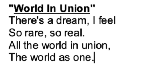 Our title of course comes from another song about world union, admittedly a play on rugby union and how international sport can help bring harmony between nations (like when the English test cricket team are welcomed by the Australians?)