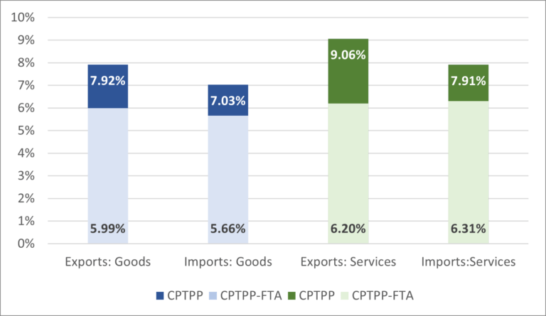 The 0.08% figure may partly reflect that the UK already had trade agreements with nine of the eleven CPTPP members but there’s a difference in that the zero tariffs are cumulative – all members’ content are exempt from tariffs.